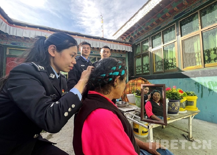 在老人家中,民警們與老人聊家常,詳細詢問老人身體、生活狀況,為老人梳理了頭發(fā)。老人顯得格外開心,她說:“年輕時,我可愛美了,特別喜歡捯飭頭發(fā)?,F(xiàn)在年齡大了,沒以前那么精神了。還好有你們幫忙,讓我又美上了。”