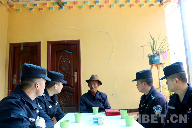 金秋時節(jié),秋高氣爽,10月14日上午,上察隅邊境派出所的民警們一大早將前幾日購買的慰問品,裝到單位車上,準(zhǔn)備前往轄區(qū)米古村老黨員卡布羅的家,給他送重陽節(jié)的暖意問候。當(dāng)看到邊境派出所的民警到家中時,年近八旬的卡布羅老人熱情地招呼民警們進(jìn)屋坐下,并為民警們倒上熱騰騰的酥油茶。