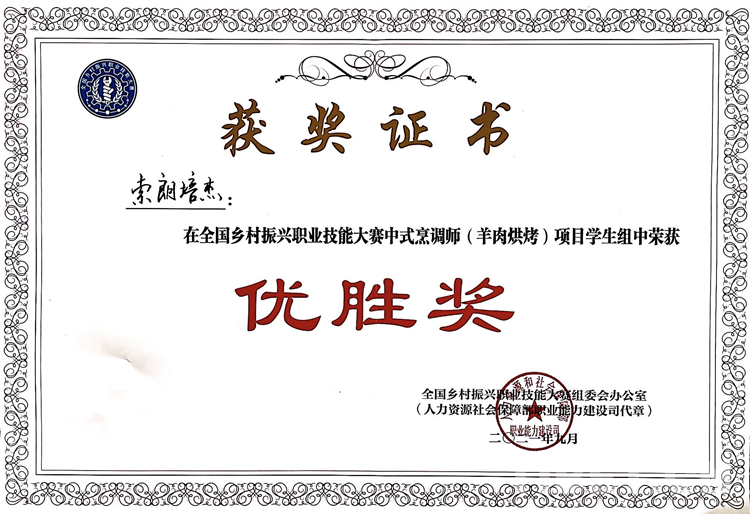 圖為獲獎證書 西藏現代服務業(yè)技工學校供圖
