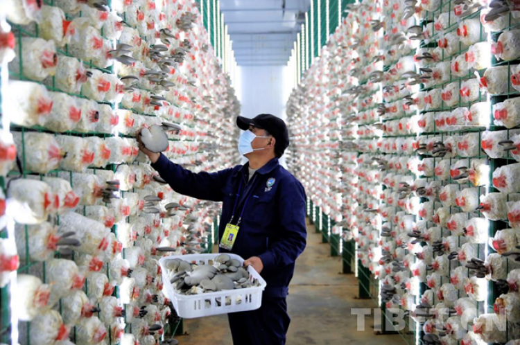 這座位于謝通門縣達那答鄉(xiāng)的食用菌基地占地345畝,建筑面積46.6畝,設(shè)有實驗室、原料庫、滅菌車間、攪拌車間、打包車間、冷卻車間、液體菌種培養(yǎng)室、接種室、菌包培養(yǎng)室、工廠化出菇棚、冷庫等,是西藏自治區(qū)唯一一家集菌棒制作、生物菌生產(chǎn)培育、生物質(zhì)燃料與有機肥制作、種植技能培訓(xùn)于一體的規(guī)?;?、集約化、標準化、現(xiàn)代化、循環(huán)綠色生物科技示范園區(qū)。