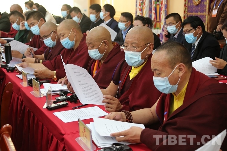 圖為政協(xié)委員聽取政協(xié)第十一屆拉薩市委員會常務(wù)委員會向大會所作的工作報告 攝影:王佳豪