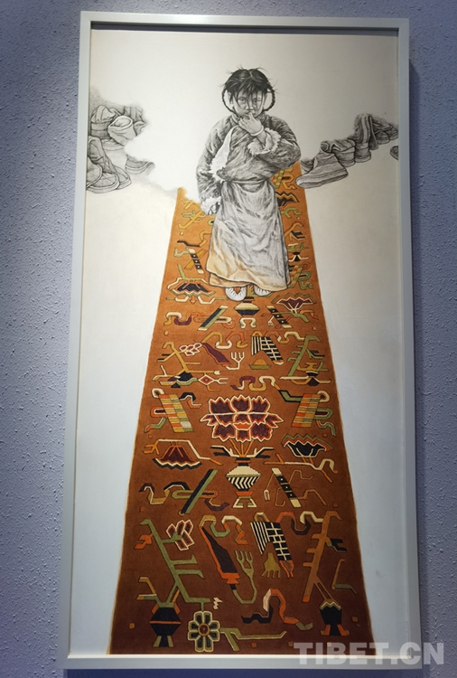 “我喜歡看美術(shù)作品展,更何況這次是精品展覽,不同材質(zhì)的碰撞,不同表現(xiàn)形式的交流,享受展覽帶給我們的視覺(jué)震撼與感動(dòng),特別是看到這么多前輩藝術(shù)家們的作品,深深感受到他們長(zhǎng)期堅(jiān)持藝術(shù)創(chuàng)作與探索。這份對(duì)藝術(shù)的追求與執(zhí)著令人敬佩,也鼓勵(lì)了我們這些中青年一代,我們將會(huì)繼續(xù)努力爭(zhēng)取創(chuàng)造出更多反映時(shí)代,貼近生活感動(dòng)的美術(shù)作品,同時(shí)希望有更多熱愛(ài)美術(shù)的青年力量加入我們,不斷壯大西藏美術(shù)創(chuàng)造的隊(duì)伍,讓更多國(guó)內(nèi)國(guó)際不同地域的人了解西藏,認(rèn)識(shí)西藏?!彼囆g(shù)家曹夢(mèng)說(shuō)。