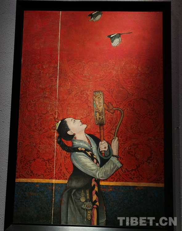 此次展覽共有39位藝術(shù)家的70多幅作品展。藝術(shù)家們?cè)诶^承西藏傳統(tǒng)的藝術(shù)形式上,利用西藏特殊元素引入各種畫(huà)種之中,并引入新的題材,讓其變得十分廣泛,同時(shí)也融合了油畫(huà)、水墨畫(huà)、水彩、雕塑等。