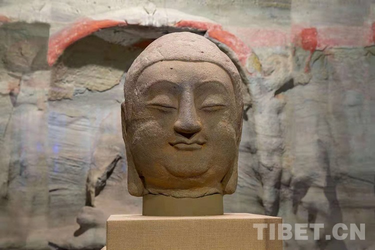 圖為“復(fù)興路上 國寶歸來”特展上的山西天龍山石窟“第8窟北壁主尊佛首” 國家文物局供圖