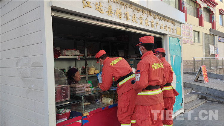 圖為昌都市江達縣,消防隊員向群眾宣傳消防知識