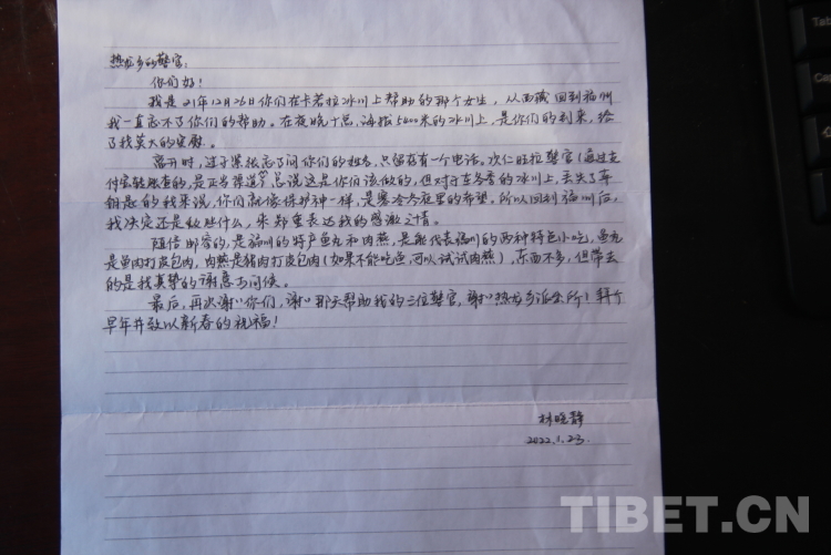 2022年1月30日,西藏自治區(qū)日喀則市江孜縣公安局熱龍鄉(xiāng)派出所意外收獲一份特殊的春節(jié)禮物——一封從福州寄來(lái)的感謝信。