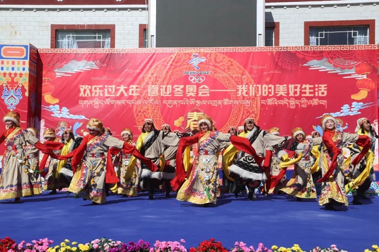 中國西藏網(wǎng)訊 日前,西藏自治區(qū)山南市乃東區(qū)扎西曲登社區(qū)舉行以“歡樂過大年 喜迎冬奧會(huì) 我們的美好生活”為主題的“村晚”活動(dòng)。