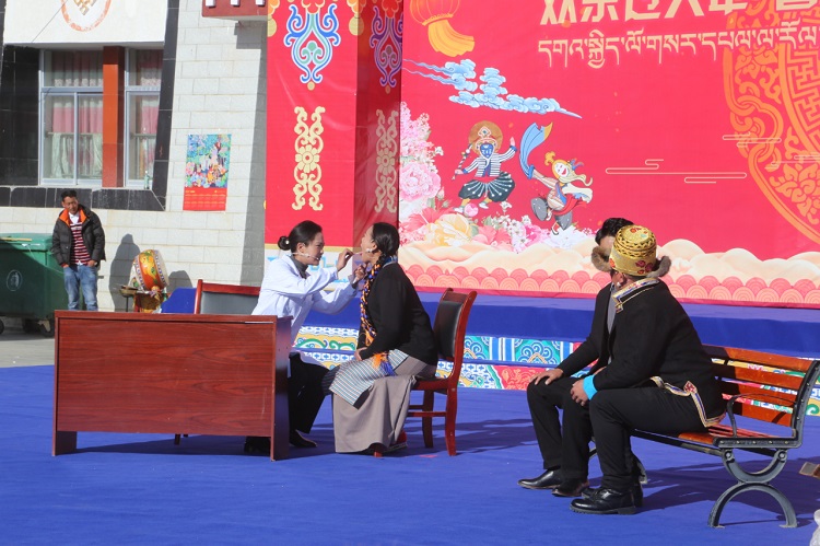 歌伴舞《美麗西藏 可愛家鄉(xiāng)》《小康贊歌》《感恩》訴說著在黨中央的親切關(guān)懷下,西藏發(fā)生的翻天覆地的變化,抒發(fā)了對(duì)偉大祖國的無比熱愛和對(duì)中國共產(chǎn)黨的忠誠之情,表達(dá)了各族干部群眾熱愛祖國、熱愛黨的堅(jiān)定決心?!断匆赂琛纷屌_(tái)下臺(tái)上一起回顧了歷史,展望了美好的未來。獨(dú)唱《長壽六寶》唱出了人與自然和睦相處的美好畫面。相聲《我村的變化》的表演生動(dòng)有趣,臺(tái)下觀眾捧腹大笑的同時(shí),更感受到了黨的各項(xiàng)惠民政策給大家?guī)淼木薮笞兓?......
