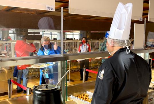 圖為巴赫為冬奧村餐飲服務(wù)點贊 圖片來源:中新網(wǎng)