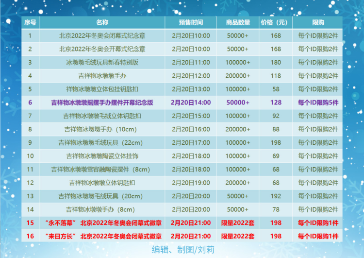 記者整理出了2月20日開(kāi)放預(yù)售的所有特許商品的有關(guān)情況,此前遺憾沒(méi)能擁有冰墩墩的網(wǎng)友們,這次應(yīng)該有望實(shí)現(xiàn)“一戶一墩”。