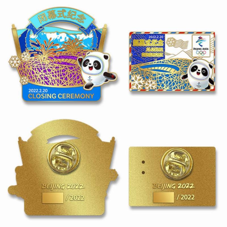 “永不落幕”北京2022年冬奧會(huì)閉幕式徽章一套兩枚,專門(mén)注明是線上專供款。兩枚徽章都以吉祥物冰墩墩、國(guó)家體育場(chǎng)“鳥(niǎo)巢”為主體,飾以雪山、雪花等,材質(zhì)均為鋅合金,采用軟琺瑯、金蔥粉印刷,以三折卡紙包裝,限量2022套。不規(guī)則形徽章高5cm、寬5.6cm,寓意賽事圓滿落幕;長(zhǎng)方形徽章高3.1cm、寬4.5cm,以明信片造型表達(dá)了中國(guó)向世界展示冬奧會(huì)精彩賽事的愿望。