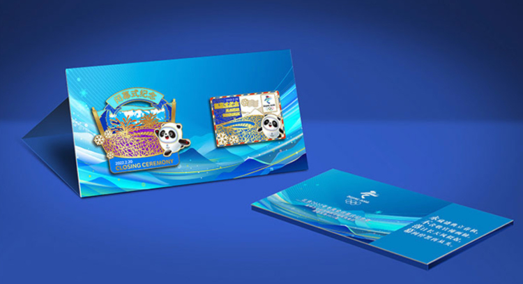 圖為“永不落幕”北京2022年冬奧會(huì)閉幕式徽章包裝展示 圖片來(lái)源:奧林匹克官方旗艦店