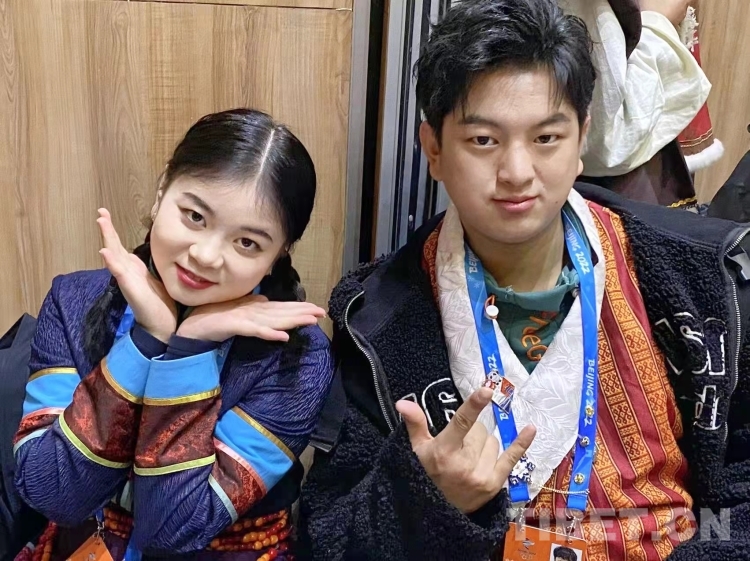 圖為參加北京冬奧會開幕式表演的珞巴族青年索朗卓瑪和門巴族青年多吉次旦 受訪者供圖