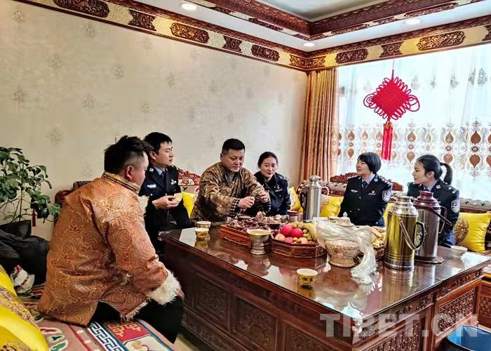在藏歷水虎年到來之際,拉薩出入境邊防檢查站3名民警利用勤務(wù)間隙,帶著精心準(zhǔn)備的節(jié)日慰問品前往結(jié)親民警尼瑪拉姆家中拜年。熱情好客的尼瑪拉姆一家用特色風(fēng)干肉、煮牛肉、卡塞、時鮮水果等美食款待了前來結(jié)親的民警們。