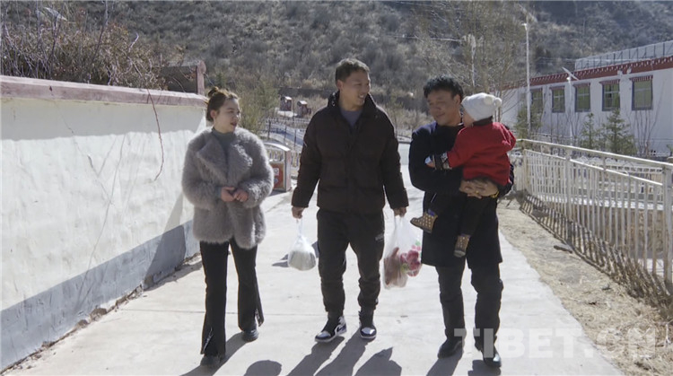 圖為土丁尼瑪迎接鐘志勇一家人到自家過(guò)藏歷新年