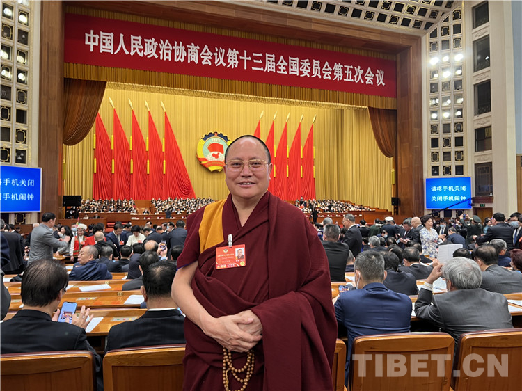 圖為全國(guó)政協(xié)委員、四川省阿壩州人大常委會(huì)副主任達(dá)扎·尕讓托布旦拉西降措