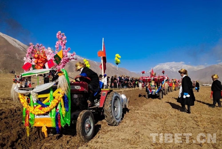 據(jù)悉,儀式當(dāng)日上午,村民們會(huì)身著節(jié)日盛裝,歡聚在田間地頭、載歌載舞隆重舉行春耕春播儀式。活動(dòng)現(xiàn)場(chǎng),姑娘們舉起手中的切瑪、青稞酒、人參果為犁手們唱歌敬酒,在祝福的歌聲中,開(kāi)啟春耕“第一犁”。在西藏,過(guò)去是牦牛耕地,如今,隨著農(nóng)業(yè)科學(xué)化發(fā)展,現(xiàn)在農(nóng)耕都用現(xiàn)代化的拖拉機(jī)“鐵?!备?。一般吉時(shí)一到,一個(gè)個(gè)犁手頭頂金黃圓筒帽,身穿氆氌藏裝駕著一輛輛插著五星紅旗,系著潔白哈達(dá)的“鐵?!本従忨傔M(jìn)田間,一片片沃土隨著鐵犁慢慢翻開(kāi),婦女們?cè)诤竺娌ト銮囡挤N……在田埂上形成一道最靚麗的風(fēng)景線,好不壯觀!