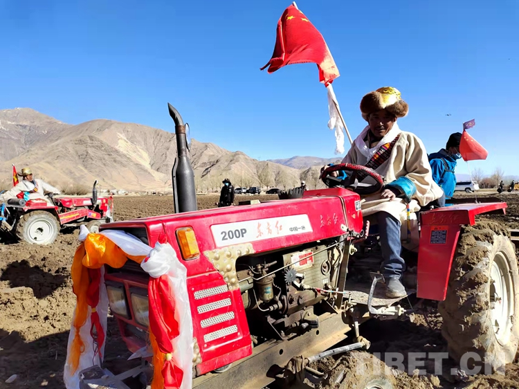 早春時節(jié),雪域高原的清晨仍沁著絲絲寒意。藍(lán)天白云下,身著整潔藏裝的農(nóng)民操作著裝扮一新的農(nóng)機(jī)設(shè)備。