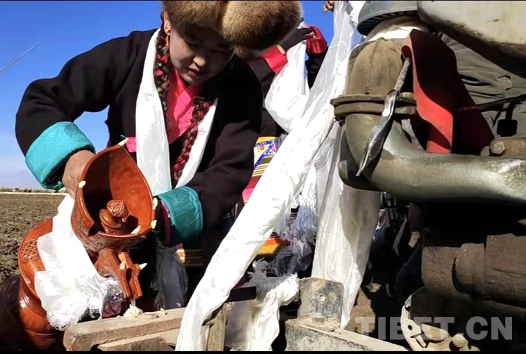 距離拉薩市區(qū)50多公里的曲水縣才納鄉(xiāng)協(xié)榮村,10時許,伴著田地內(nèi)外升騰的桑煙,村民們手捧潔白的哈達(dá)爭相獻(xiàn)給蓄勢待發(fā)的農(nóng)機(jī)手,耕地機(jī)轟鳴著圍繞田地開動,銀色的犁頭刨開沉睡了整個寒冬的沃土,開啟春耕首日“第一犁”。