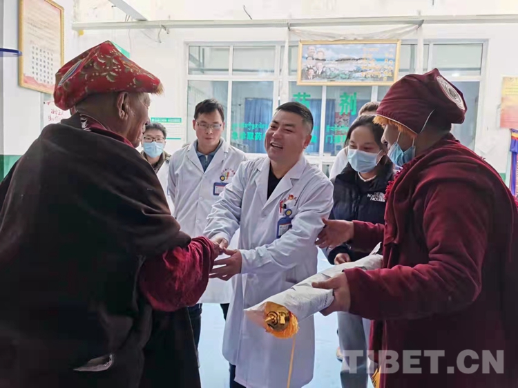 圖為患者貢嘎登達家屬為表示感謝為援藏醫(yī)生送上了錦旗