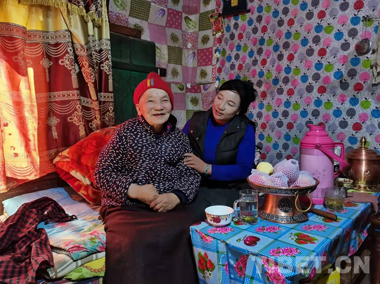 今年73歲的玉蘭老人,在崗托村生活了多年,她的父親是來自四川的漢族,母親是崗托村的藏族,從小就在藏漢結合家庭中成長起來?,F(xiàn)在,在女兒沖旺姆的精心照料下,過著安詳幸福的晚年生活。江達縣崗托鎮(zhèn)黃格村村民玉蘭說:“大概二十多年前,我們搬到了崗托村生活,這么多年,鄉(xiāng)里、村里的領導對我們家很照顧,我感覺現(xiàn)在生活的很好,很滿意!”