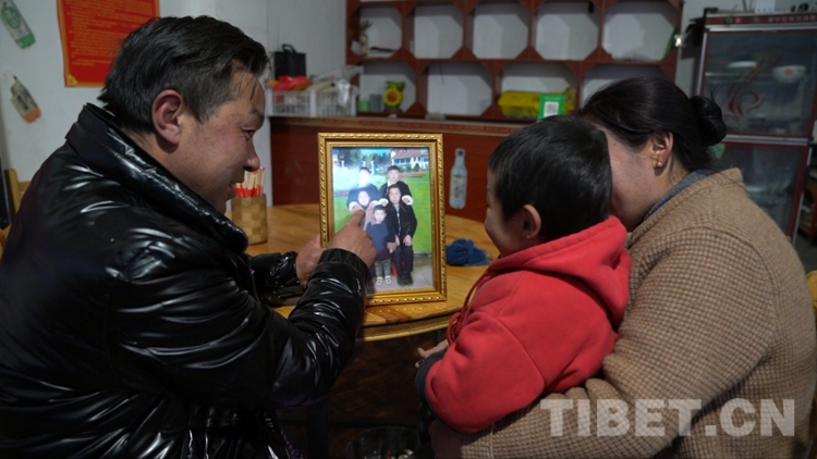 圖為民族團結家庭趙以存給小兒子看一家五口的全家福