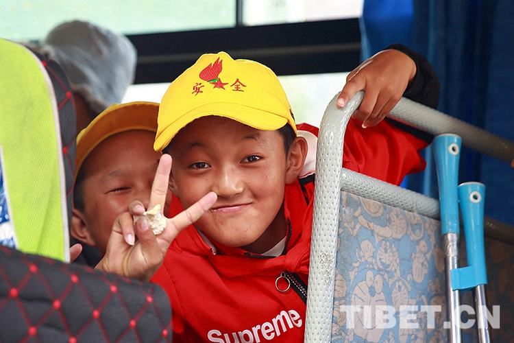 圖為校車上的西藏兒童(資料圖)攝影:楊月云