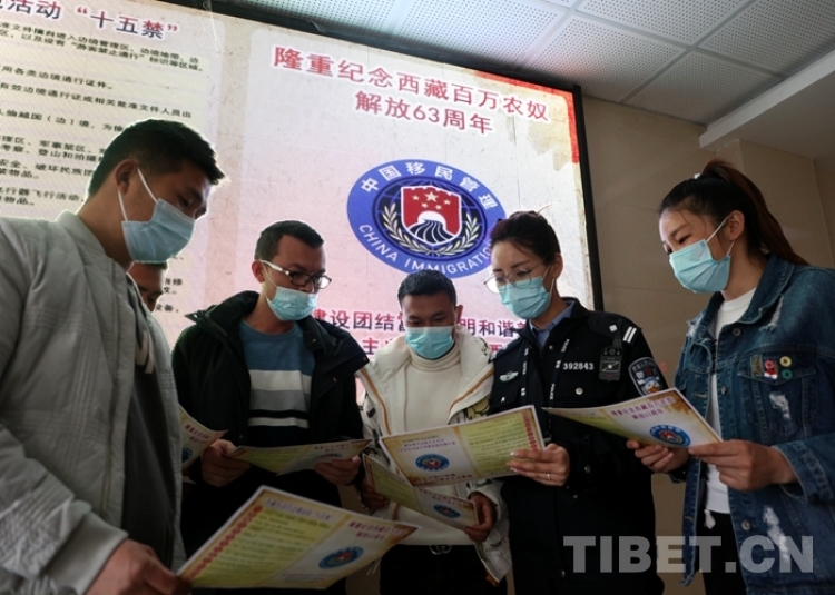 在西藏出入境邊防檢查總站執(zhí)法調(diào)查支隊(duì)辦證大廳,辦證室民警結(jié)合辦證室群眾多、人流量大的實(shí)際,開展以“攜手法律宣傳,共建平安邊境”為主題的宣傳活動(dòng)。通過懸掛宣傳標(biāo)語、設(shè)置新舊西藏對比圖片專欄、發(fā)放“新舊西藏對比圖及涉邊法律法規(guī)”為主題的宣傳單等多種渠道,講解西藏百萬農(nóng)奴翻身得解放的歷史背景,讓更多游客群眾了解西藏民主改革以來波瀾壯闊的發(fā)展史和翻天覆地的新變化,銘記只有中國共產(chǎn)黨才能領(lǐng)導(dǎo)西藏各族群眾過上幸福美好的生活。