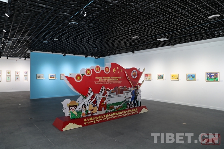 圖為畫美時代——“紀(jì)念西藏百萬農(nóng)奴解放63周年”拉薩市青少年優(yōu)秀繪畫作品展現(xiàn)場
