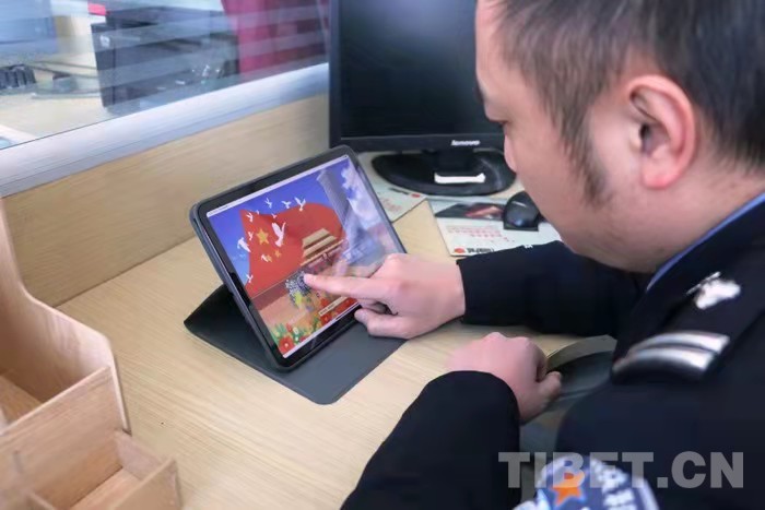 圖為西藏邊檢總站執(zhí)法調(diào)查支隊(duì)民警通過網(wǎng)上獻(xiàn)花向英烈表達(dá)敬意、寄托哀思 攝影:劉文