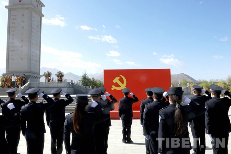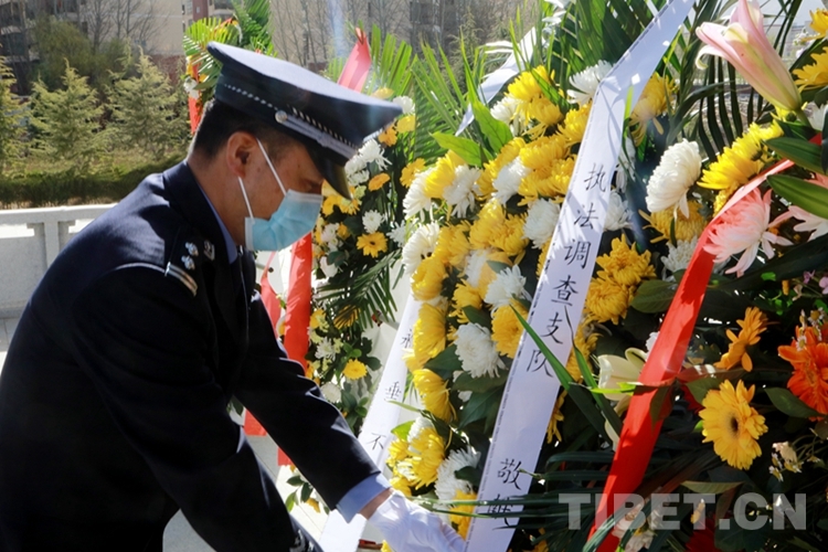 圖為西藏邊檢總站執(zhí)法調(diào)查支隊(duì)民警在拉薩烈士陵園開展祭奠活動 攝影:劉明陽