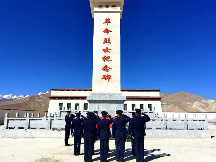 吉隆邊境管理大隊組織民警前往縣烈士陵園,在神圣莊嚴的烈士紀念碑前莊重肅立,向長眠在此的76名烈士敬禮、默哀,全體黨員民警面向紀念碑,在革命烈士見證下重溫入黨誓詞,堅定獻身邊疆、矢志衛(wèi)國的初心使命。貢當邊境派出所聯(lián)合貢當鄉(xiāng)政府工作人員登上山嶺,來到紅色碉堡遺址前,認真傾聽轄區(qū)老黨員講述解放軍同西藏各族人民肝膽相照與敵對勢力進行艱苦卓絕斗爭最終走向勝利的光輝事跡。