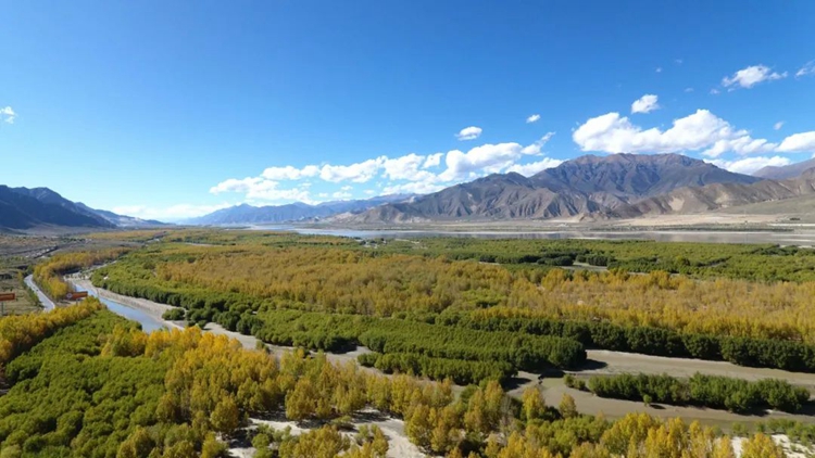 近年來,山南還利用市場機制,引入億利集團、蒙草集團等科技公司進駐雅江兩岸,為防沙治沙注入了高科技成果,沙化土地擴張趨勢有效減緩,生態(tài)環(huán)境得到積極改善。如今,雅魯藏布江山南段北岸已被郁郁蔥蔥的林木覆蓋,形成了一條“綠色長廊”。