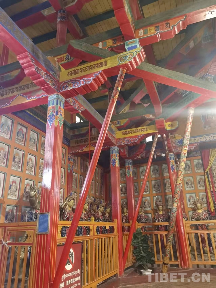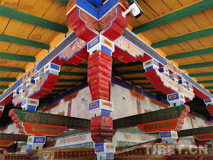 圖為桑耶寺金頂內(nèi)的柱拱梁