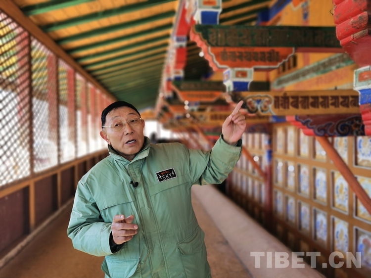 圖為木雅·曲吉建才介紹古建筑文化 攝影:王淑