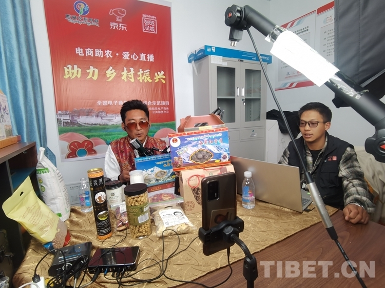 圖為主播在瓊結(jié)縣農(nóng)村快遞分撥配送中心工作室內(nèi)為當(dāng)?shù)靥禺a(chǎn)“代貨” 西藏自治區(qū)交通運輸廳供圖