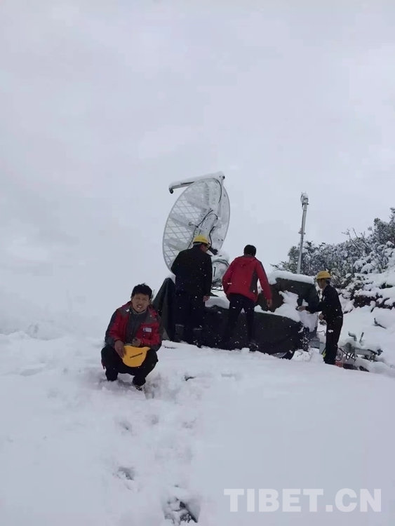 圖為旦增桑布(左一)和同事們?cè)诤0?300米的礦區(qū)工作