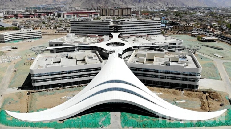 中國西藏網(wǎng)訊 挖掘機的轟鳴聲、鋼管的碰撞聲,走進西藏自治區(qū)醫(yī)院項目施工現(xiàn)場,一派忙碌的景象。從空中俯瞰,建設(shè)中的西藏自治區(qū)醫(yī)院外形宛如一朵格?;?,目前正進行室內(nèi)裝修和機電安裝。