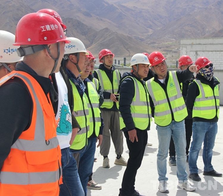 圖為張磊(右二)帶領(lǐng)施工人員在西藏自治區(qū)醫(yī)院項目施工開展現(xiàn)場檢查
