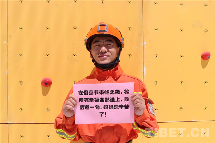 藏族消防員邊瑪桑堆對他母親說:“母親節(jié)到了,我祝媽媽節(jié)日快樂!媽媽,扎西德勒!”