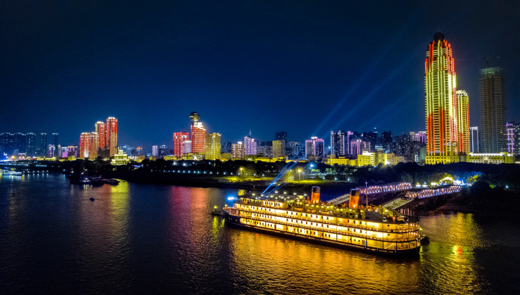 圖為知音號(hào)游船在武漢長(zhǎng)江段瑰麗的夜景中暢行 圖片來(lái)源:知音號(hào)網(wǎng)站