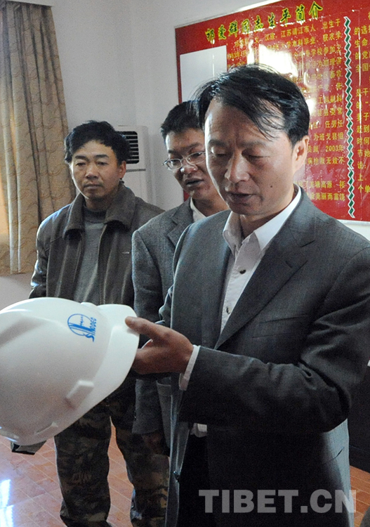 這是中國石化首批援藏干部李一超,在回憶他向祁愛群贈送這頂礦工帽的經過(唐召明2009年8月12日攝)