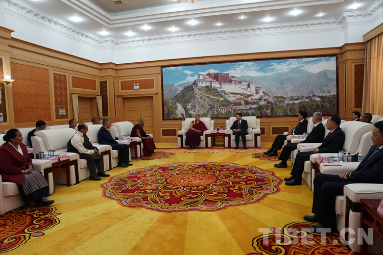 西藏自治區(qū)領(lǐng)導(dǎo)洛桑江村、莊嚴(yán)、陳永奇、嘎瑪澤登、達(dá)娃次仁、甲熱·洛桑丹增、珠康·土登克珠、薩龍·平拉、索朗仁增陪同會(huì)見(jiàn)。(中國(guó)西藏網(wǎng) 記者/王淑 拉姆)