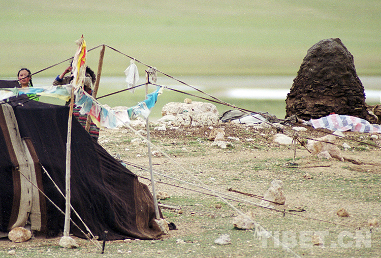 這是幾位在班戈縣納木錯(cuò)湖邊煮茶、抓糌粑吃午餐的藏北牧人(唐召明1991年攝)