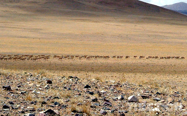 藏羚羊是一種比藏野驢更耐受高寒地帶惡劣生存條件的動物。它是真正為青藏高原,特別是羌塘這種平緩起伏的荒野高地而生的動物,以至于在世界上任何地方都找不到與之親緣關(guān)系很近的物種。