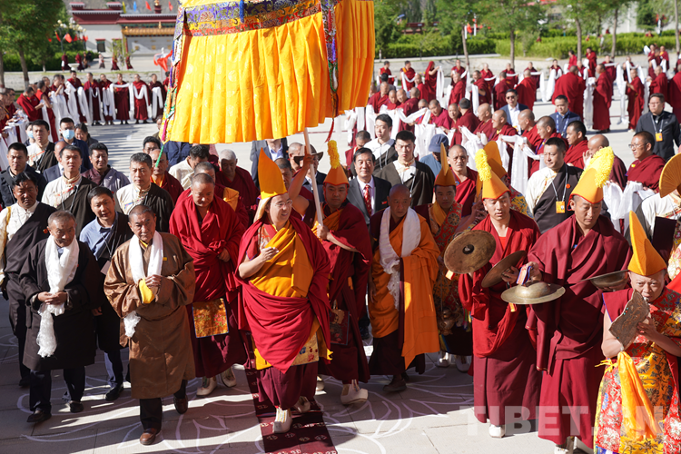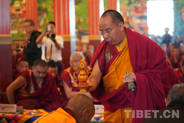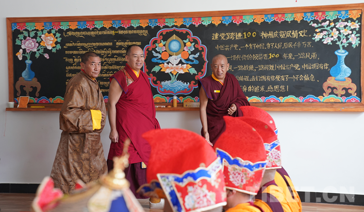 班禪表示,今天來到學(xué)院看到無論是硬件上、軟件上,都功德具足、法喜圓滿。我想一切的外在條件都已經(jīng)萬事俱備,只需要我們?nèi)w師生奮發(fā)圖強,珍惜把握學(xué)習(xí)時光?!白8W(xué)院師生們健康長壽,用我們現(xiàn)有的人生為祖國、為民族、為中國特色社會主義的建設(shè)、為藏傳佛教中國化做出更多的貢獻。祝愿大家六時吉祥、十相自在、功德圓滿!”