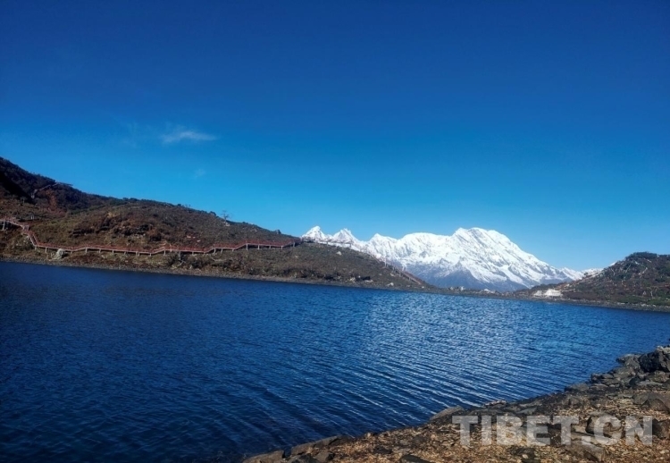 從吉隆鎮(zhèn)出來,沿著峽谷向北盤山而上,約莫一個(gè)小時(shí)車程就到了扎村朗吉措景區(qū)。從停車場(chǎng)沿著景區(qū)棧道拾階而上約半個(gè)小時(shí),便是朗吉措觀景臺(tái)。從觀景臺(tái)后向北望去,眼前頓時(shí)開闊了,遠(yuǎn)處的雪山撲面而來,令人震撼。接連雪山的是一大片草甸和農(nóng)田。近處山巒重疊,半山腰以上雪還沒有融化完。朗吉措就靜靜安睡在眼前這群山環(huán)抱之中,從觀景臺(tái)只能看到一個(gè)小角,像一個(gè)半遮面的小姑娘。沿梯而下來到湖邊,我們走走停停,繞湖一周。蔚藍(lán)色的湖水寧靜安謐,陽光撒在湖面,像閃閃發(fā)光的小鉆石。雪山、藍(lán)天、環(huán)山簇?fù)碇?,各種角度拍照都難盡其美。