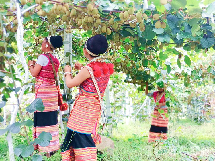 圖為僜人姑娘在獼猴桃樹(shù)下采摘 圖片由高永徐提供