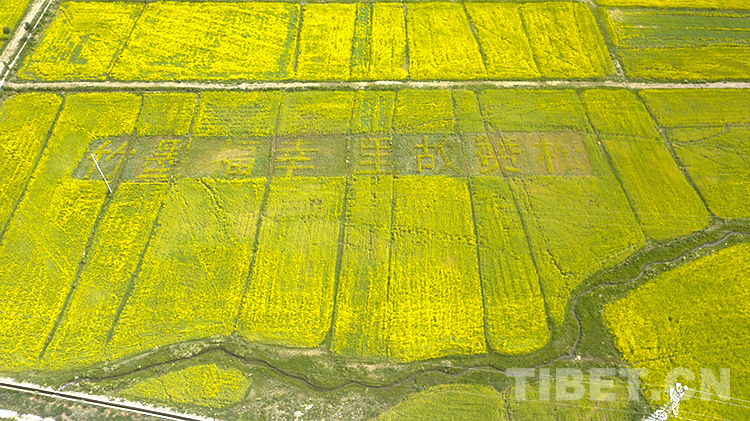 值得一提的是,在扎西崗鄉(xiāng)主會場,當?shù)貙⒒牡刂匦麻_墾,安排種植了油菜花大地景觀。不同品種、不同顏色的油菜花海為背景的種植,從空中俯瞰形成了“喜迎二十大”“松贊故里 幸福墨竹”字樣和松贊干布、文成公主、哈達、愛心等圖樣,表達當?shù)厝罕娤灿h的二十大的美好祝福。