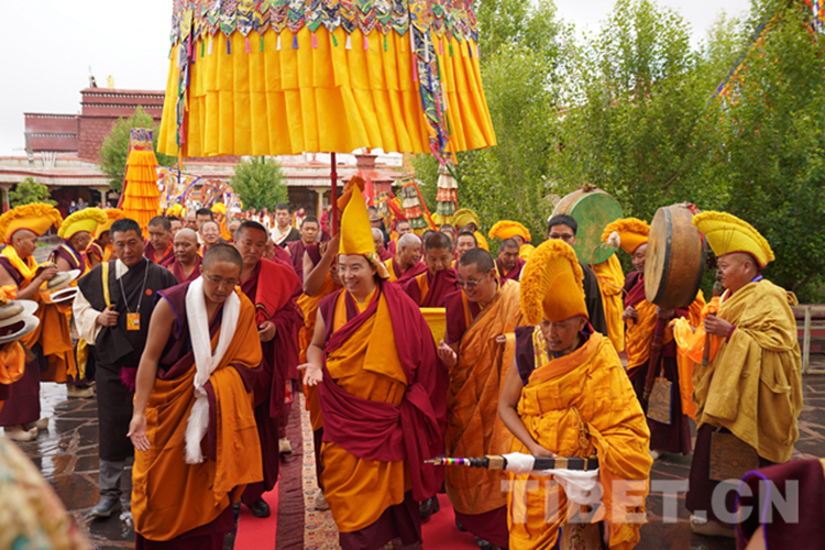 圖為班禪在桑頂寺僧人和儀仗隊(duì)引領(lǐng)下緩緩入寺 攝影:王淑